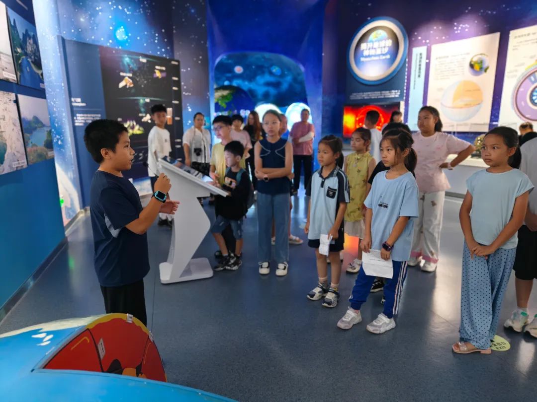 7月25日的考核现场格外热闹,“小小讲解员”们轮番登场:讲解地球奥秘条理清晰,介绍古生物化石充满敬畏,说起广西矿产俨然“小专家”……他们的声音虽显稚嫩,却洋溢着真诚与自信。
