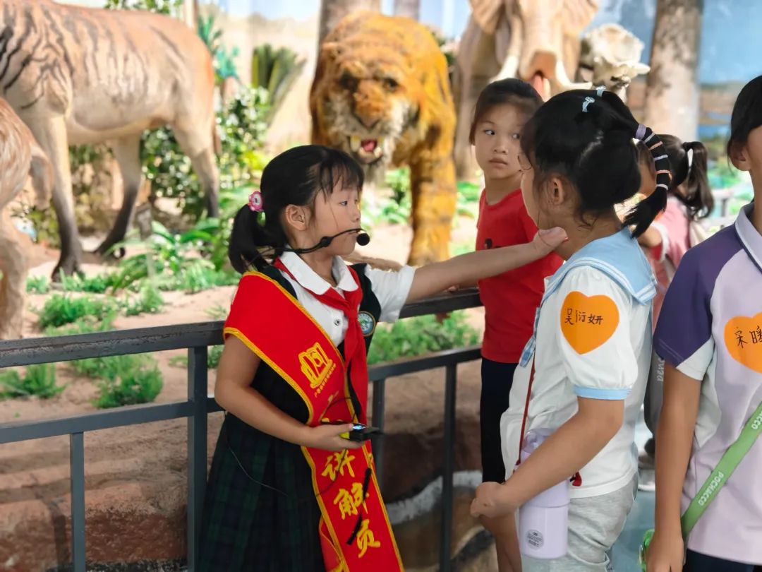 1—4楼展厅成为实战“练兵场”。手持讲稿,孩子们在展柜前反复练习:有的轻声试讲,有的互相纠错,有的鼓起勇气向游客讲解。从紧张忘词到流畅自如,从眼神躲闪到互动大方,每一次尝试都在进步。老师的耐心指导、游客的鼓励掌声,让孩子们体会到,讲解不仅是传递知识,更是分享快乐的过程。