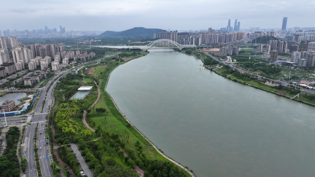 二是坚持“三水统筹”治理,全面推进邕江全流域整治。其一,强化水源保护,筑牢饮水安全防线。通过上移邕江取水口,成功化解城市发展与水源保护的矛盾,构建“两江并举,互为备用”的原水取水格局,为城市供水安全增添“双保险”。科学制定邕江河道采砂规划,累计清理整治邕江及其上游河湖“四乱”问题 355个。累计拆除邕江流域违法网箱养鱼9万余个,有效降低渔业活动对水体的直接污染。开展市级水源地环境问题专项整治行动,整治邕江饮用水水源保护区环境问题47个。如今,邕江水质常年稳定达到Ⅱ类以上,市县两级饮用水水源水质达标率保持在100%。其二,优化生态布局,保障水安全与生态健康。依据“一江两岸十八园 百里花江”规划理念,优化滨江功能布局,推动水绿深度融合,恢复和重塑邕江生态系统。开展珍稀鱼类增殖放流,有效补充邕江鱼类资源,2023—2024年累计投放乌原鲤、桂孟加拉鲮等土著鱼种超200万尾,邕江土著鱼类种群恢复速度提升30%。提升邕江生态流量和水面面积,建设邕宁和老口水利枢纽工程,邕江水位从62米提升到67米,全市水面面积率由8%提升到10.5%,南宁跻身城市水面第一分区行列;南宁市主城区防洪标准达到200年一遇,解决了邕江防洪及内涝问题,保护了2.02万人和503.2公顷耕地的安全。其三,实施水污染综合治理,提升水环境质量。开展控源截污和邕江污水直排口整治,对18条内河水环境进行综合整治,实施水系连通、生态补水、水污染防治、水环境治理等。深入开展城市污水处理提质增效,整治建成区内污水直排口513个,新建污水管网1086公里,现状管网达近6000公里,污水管网空白区基本消除,2024年底实现城市污水集中收集率80.39%。建成区原有38段黑臭水体实现清零,南宁市获全国黑臭水体治理示范城市称号,黑臭水体系统治理获生态环境部通报表扬,排水体制改革创新及管网运维资金保障举措获住建部作为典型经验在全国推广。那考河获“中国人居环境范例奖”及“全国美丽河湖”称号。